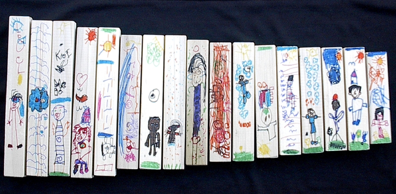 Self-portrait xylophone made by Kindergarten students with sound artist, Ward Hartenstein.